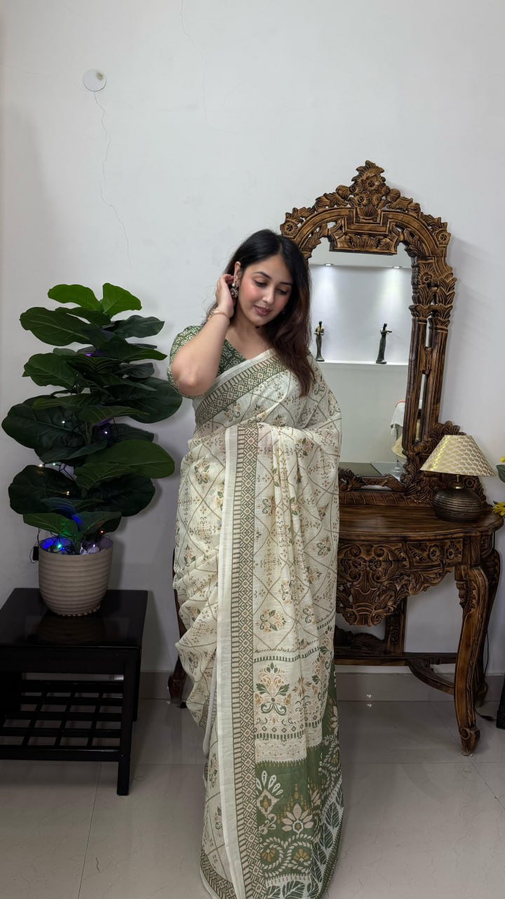 Perfect for casual gatherings, cultural events, or festive daytime occasions, this saree exudes grace in every fold.